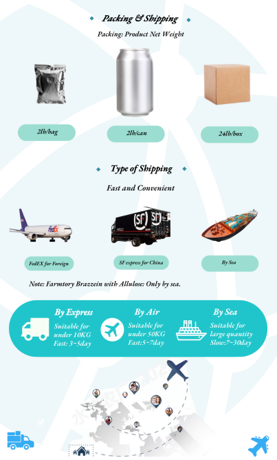 Brazzein is packed in 1kg cans and grouped into 12kg boxes to ensure safe, high-quality transit